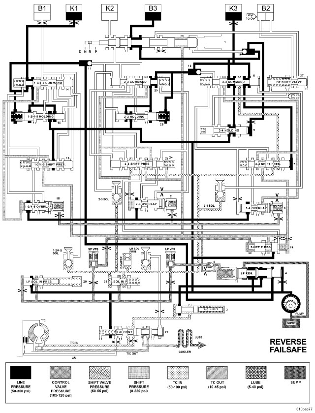 Figure 19 - HYDRAULIC FLOW IN DRIVE - FOURTH TO THIRD GEAR TRANSITION
