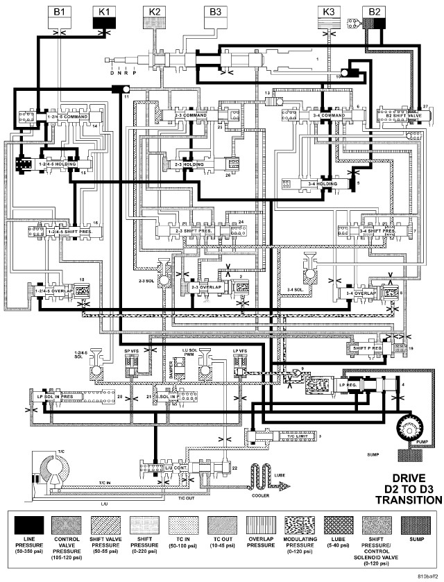 Figure 20 - HYDRAULIC FLOW IN DRIVE - THIRD TO SECOND GEAR TRANSITION