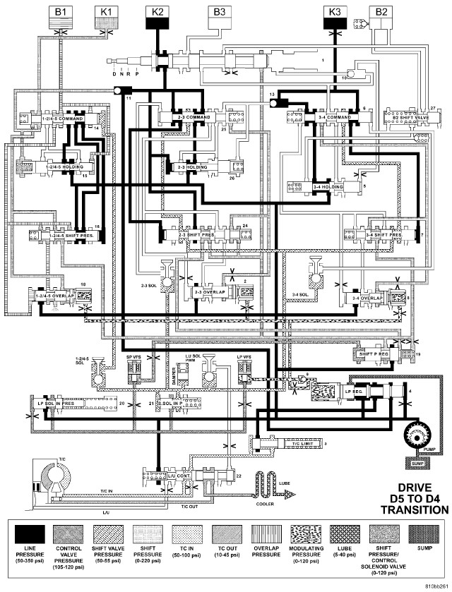 Figure 18 - HYDRAULIC FLOW IN DRIVE - FIFTH TO FOURTH GEAR TRANSITION