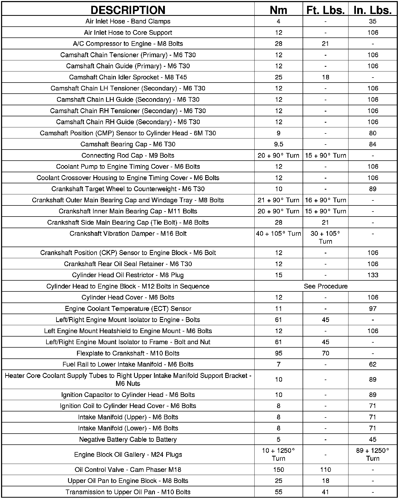Engine Torque Specifications