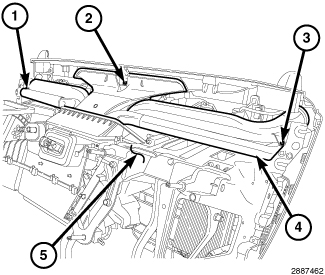 1. Position the instrument panel duct assembly (4) into the instrument panel. Be sure that all duct connections are correctly made and that the foam seals are not damaged or deformed.
