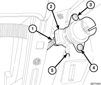2. Install the two screws (3 and 4) that secure the in-car temperature sensor to the instrument panel. Tighten the screws securely.