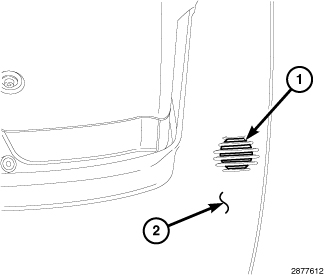 2. Place a small piece of newspaper in front of the aspirator motor opening grille (1), located on the steering column opening cover (2). If the paper sticks to the grille, the aspirator motor is operating properly. The piece of paper should be only large enough to cover the opening.