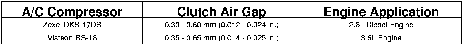 A/C CLUTCH AIR GAP SPECIFICATIONS