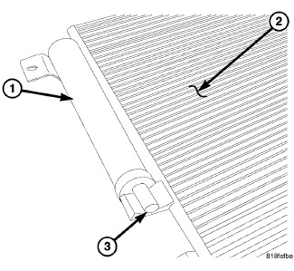 3. Connect the receiver/drier (1) to the right end of the A/C condenser (2).