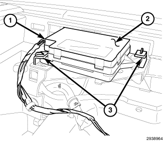 3. Reinstall the RCM engaging the clips (3) that secure the module to the upper instrument panel cover.