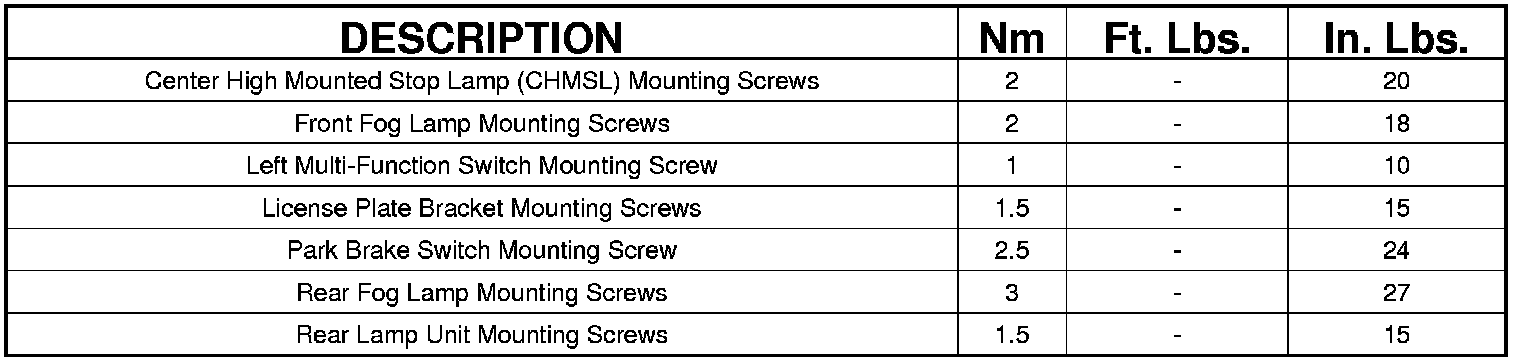 TORQUE SPECIFICATIONS