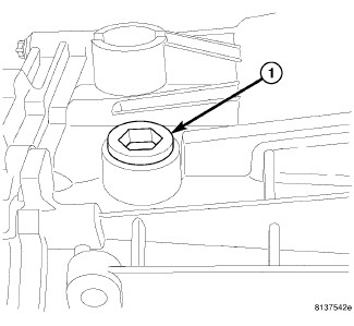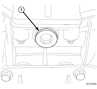5. Fill transmission with 1.5 L (3.17 pts.) of Mopar(R) Manual Transmission Lubricant MS-9224 or to the bottom of the fill plug (1) hole.