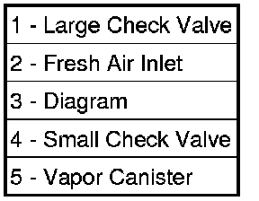 During refueling, pressure is built up in the evaporative system. When pressure reaches approximately.5 inches of water, the large check valve unseats and pressure vents to the fresh air filter.