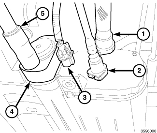 2. Install the ESIM switch (4) into the EVAP canister and rotate clockwise until the electrical connector is in the 3 O'clock position.