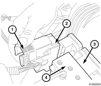4. Pull up on the ABM harness connector release (1) and remove connector (2).