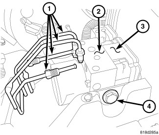 6. Remove HCU/ABM mounting nuts and bolt (4) and remove HCU (2) / ABM (3) as an assembly.