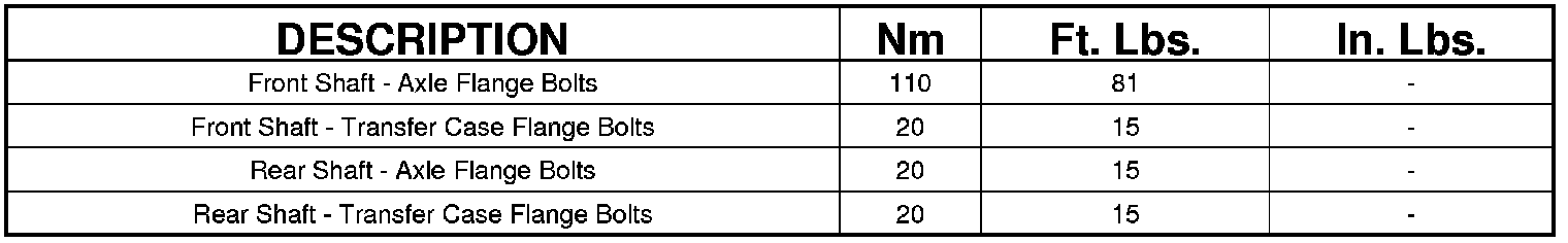 TORQUE SPECIFICATIONS
