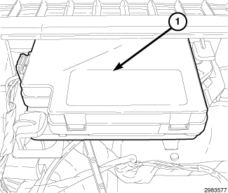 32. Remove the remote start antenna (1) from the mounting tabs located near the passenger side door.