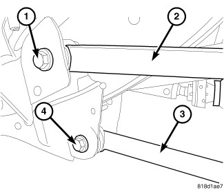 1. Position the lower suspension arm (3) in the axle bracket and frame rail mount.