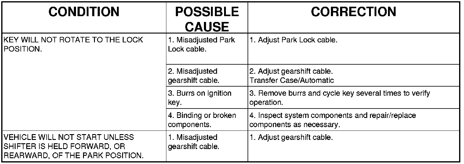 2. When the shift lever is in PARK, the ignition key cylinder should rotate freely from ACC to LOCK. When the shifter is in any other gear or neutral position, the ignition key cylinder should not rotate to the LOCK position.