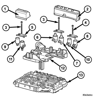 5. Withdraw solenoid valves (6 - 11) from shift plate (13).