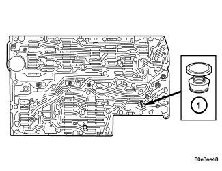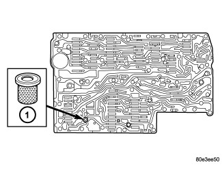 14. Remove the strainer (1) in the inlet to torque converter lock-up control solenoid valve.