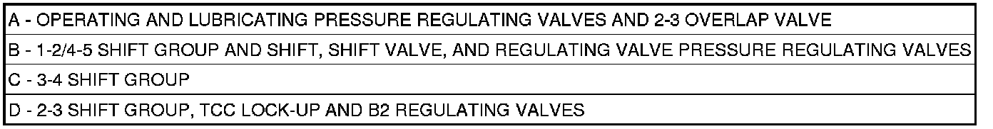 - B - 1-2/4-5 Shift Group and Shift, Shift Valve, and Regulating Valve Pressure Regulating Valves