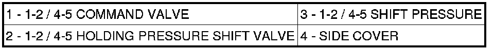 23. Remove the 1-2 / 4-5 Command valve assembly (1), 1-2 / 4-5 Holding Pressure Shift Valve (2) and the 1-2 / 4-5 Shift Pressure Shift Valve assembly (3) from the valve body.