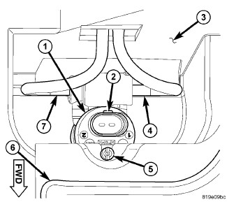 5. If the vehicle is so equipped, reconnect the rear washer hose (7) to the barbed pump outlet nipple.