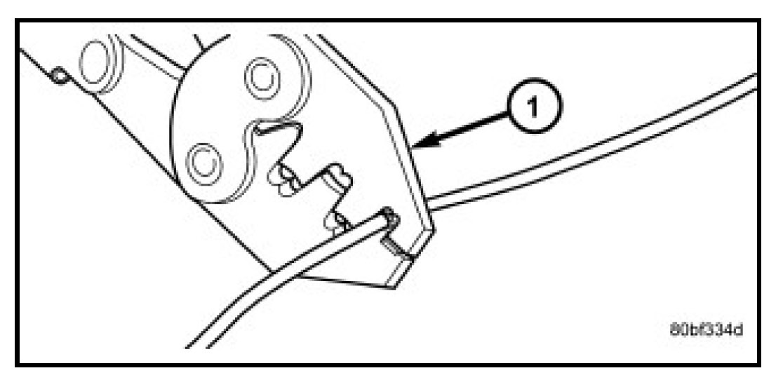4. Using a crimping tool (1) (MOPAR Part Number 05019912AA, Miller Special Tool Number 10042 or equivalent) crimp the splice band and wires together securely.