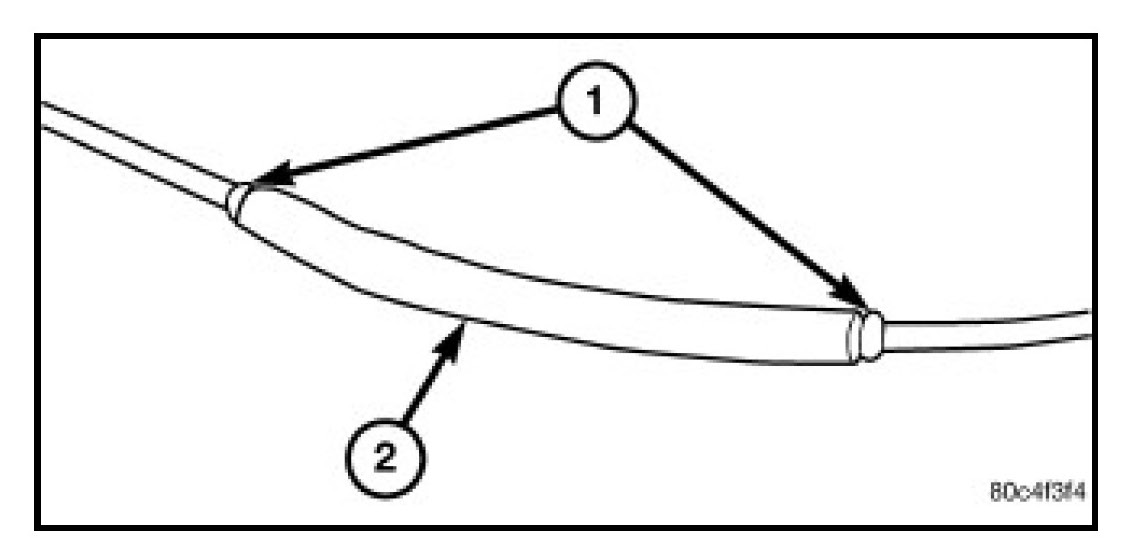 2. Place a piece of adhesive sealant-lined heat shrink tubing (Part Number 04778570 or equivalent) over the wire on one side of the splice. Be certain the length of tubing will be sufficient to cover and seal the entire repair area.