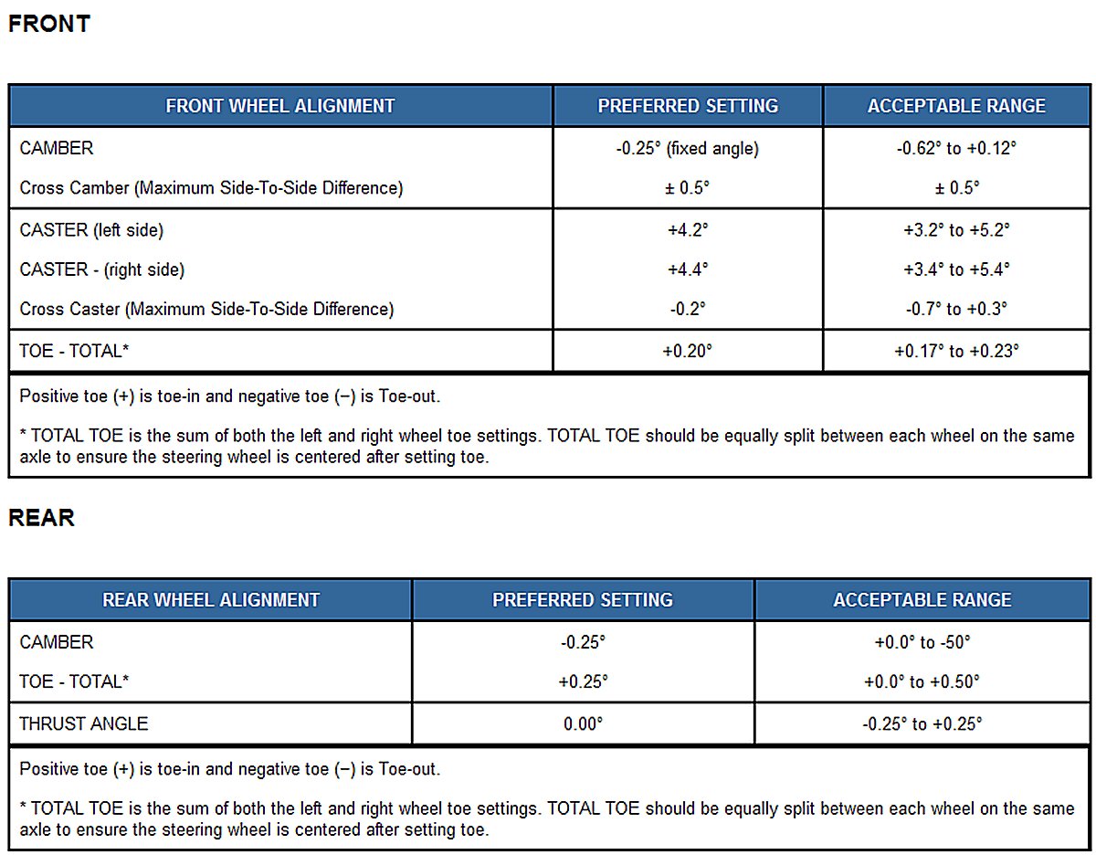NOTE: Alignment specifications are in degrees.
