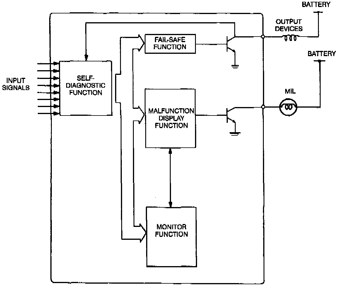 NOTE: The ECM constantly checks for malfunction of the input devices. The ECM checks for malfunction of output devices only in a three second period after the ignition switch is turned ON and the ENG. TEST terminal of the data link connector (DLC) is grounded.