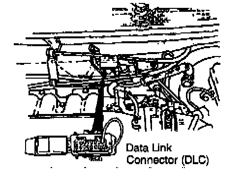 The Data Link Connector (DLC) is located at the center of the firewall in the engine compartment.
