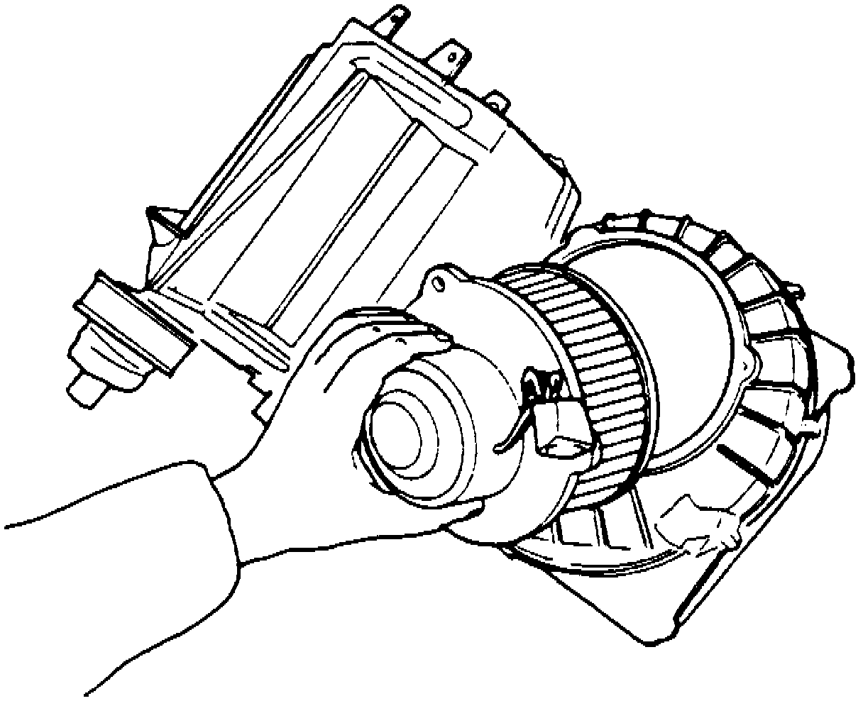 27. Remove C-clip retaining fan wheel on blower motor shaft.