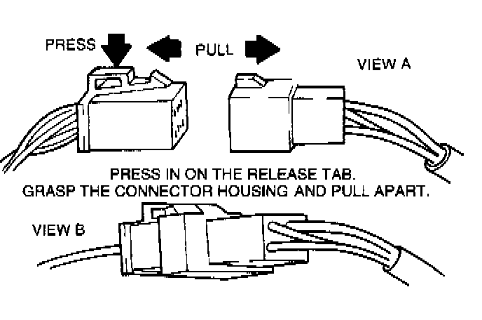 ^ Grasp the connector housing and pull until the locking tab is on the ramp.
