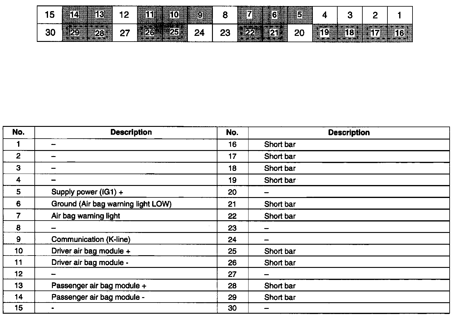 Air Bag Diagnostic Unit (ADU) Pinout Values: