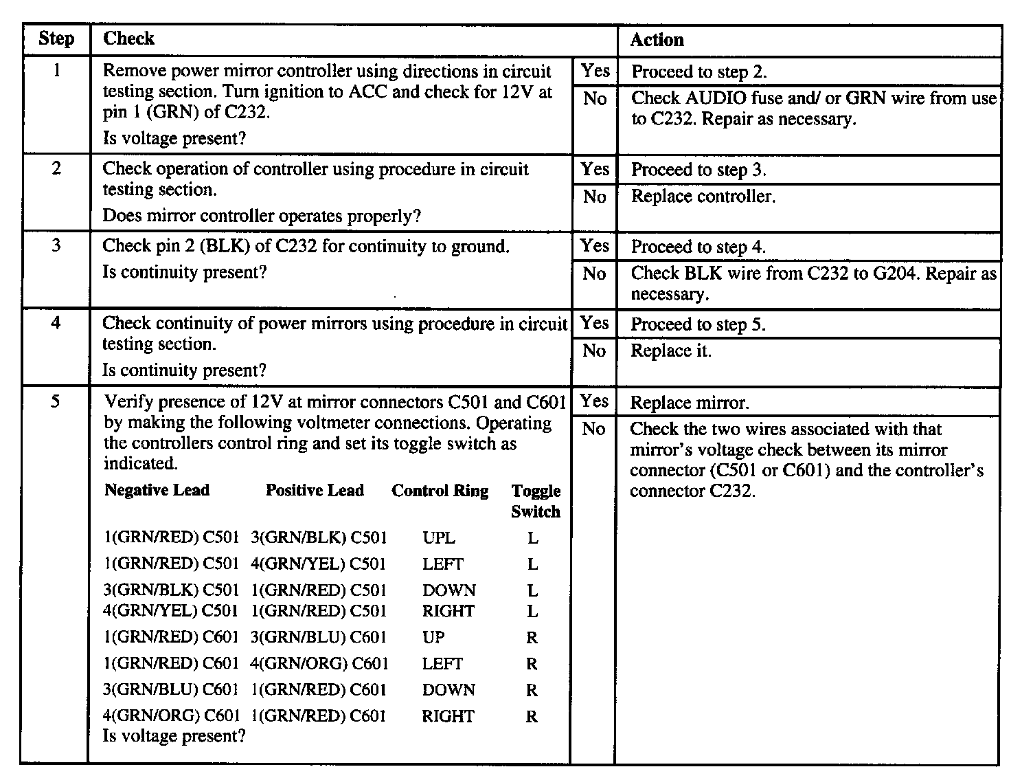 Power mirrors do not move
