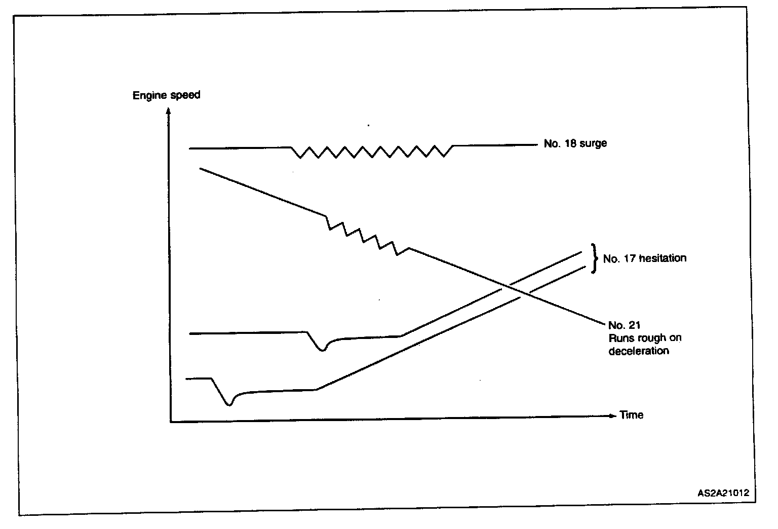 Delay in increase in engine speed occurring just after the