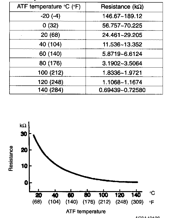 5. If not as specified, replace transaxle fluid temperature sensor and connector wiring as an assembly.