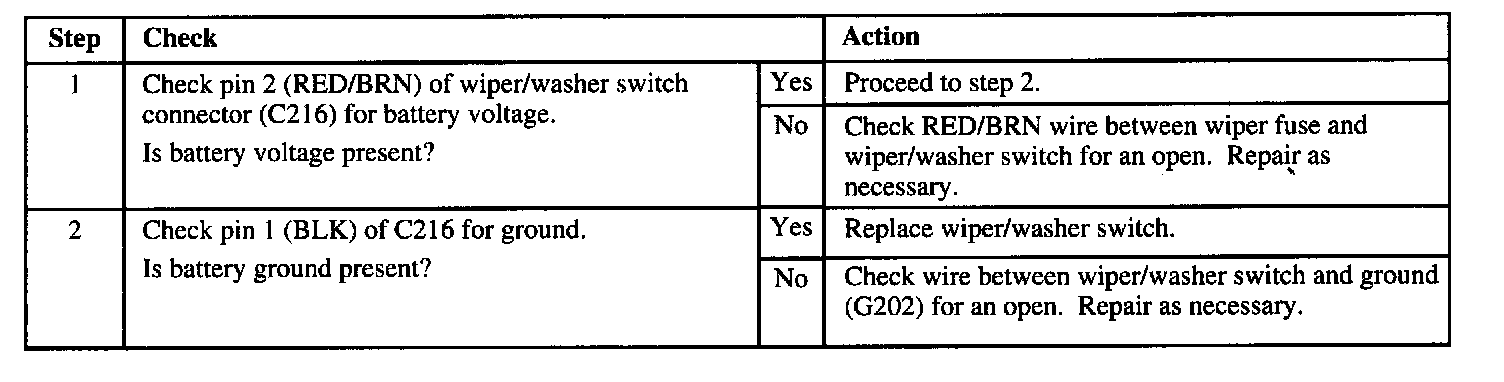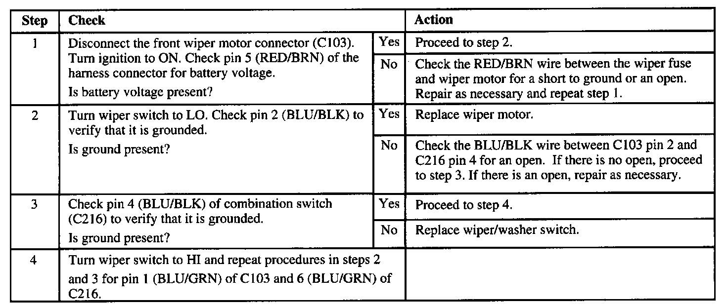 Wiper Does Not Operate in LO or HI Position