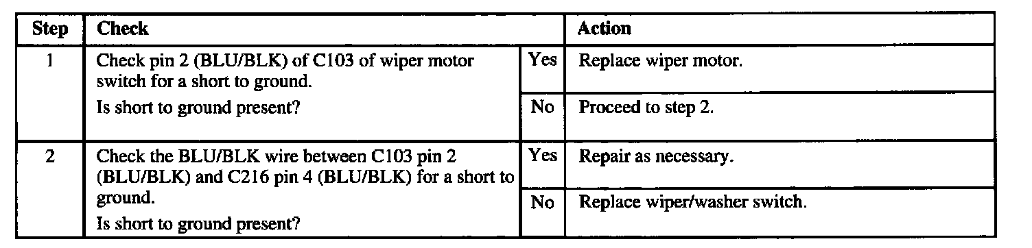 Preliminary Check: Check condition of "WIPER" fuse. If fuse is open, locate and repair source of overload. Replace fuse.