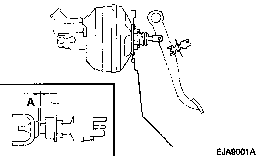 SERVICE BRAKE PEDAL INSPECTION AND ADJUSTMENT1. Turn the stop lamp switch until the clearance between the stop lamp switch outer case and pedal arm reaches the standard value, and secure the stop lamp switch with the locknut. Clearance between pedal and stop lamp switch "A" 0.5 - 1.0 mm (0.02 - 0.039 inch)
