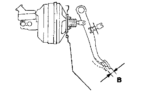 2. Free play of brake pedal. Free play of brake pedal "B" 3 - 8 mm (0.12 - 0.32 inch)