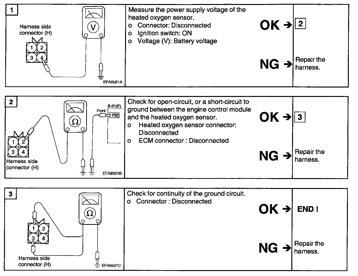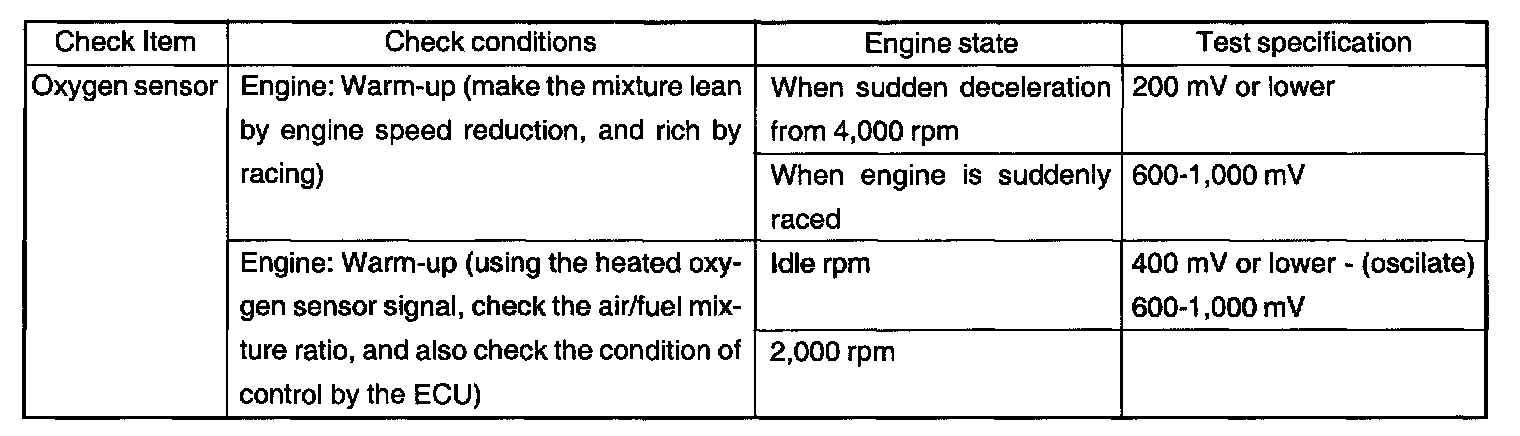 2. If the HO2S check results were normal, but the sensor output voltage is out of specification, check for the following items (related to air fuel ratio control system):