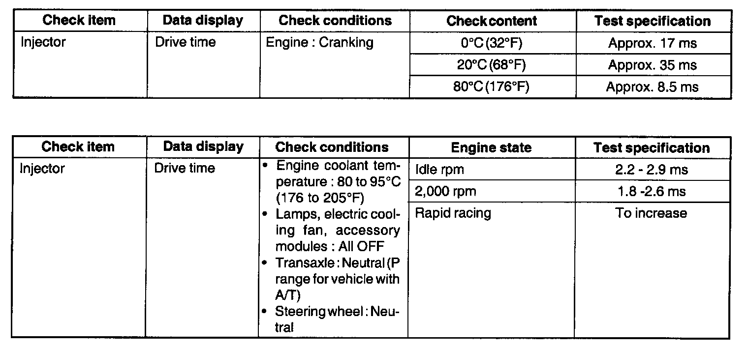 3. When the vehicle is new (within initial operation of about 500 km [300 miles]), the injector drive time may be about 10% longer.