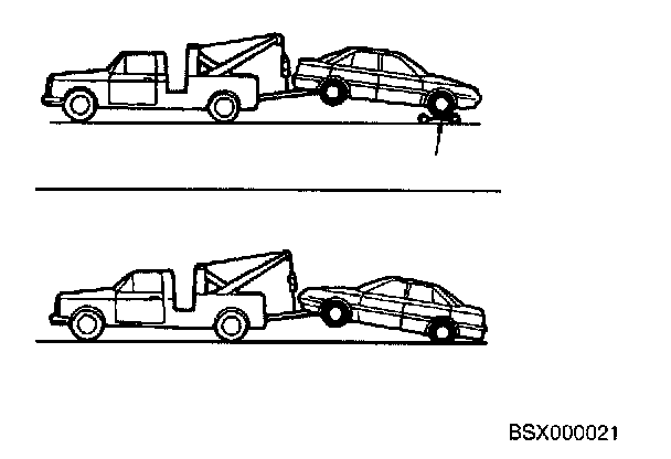 - Do not tow vehicle backward with driving wheels on the ground. This may cause internal damage to transmission.