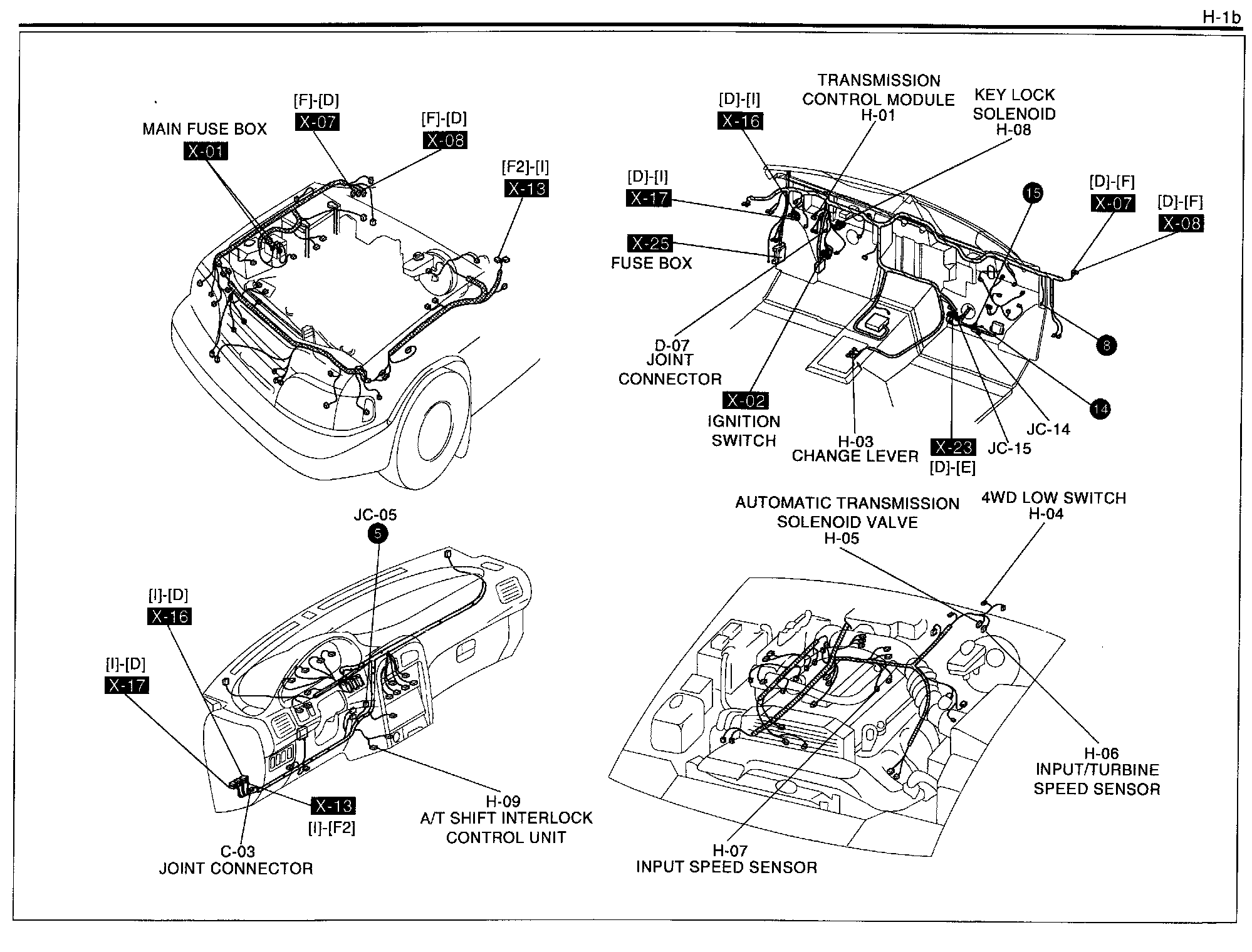 H-1b - Transmission Control System, A/T Shift Interlock Control System Harness / Connector Symbols: