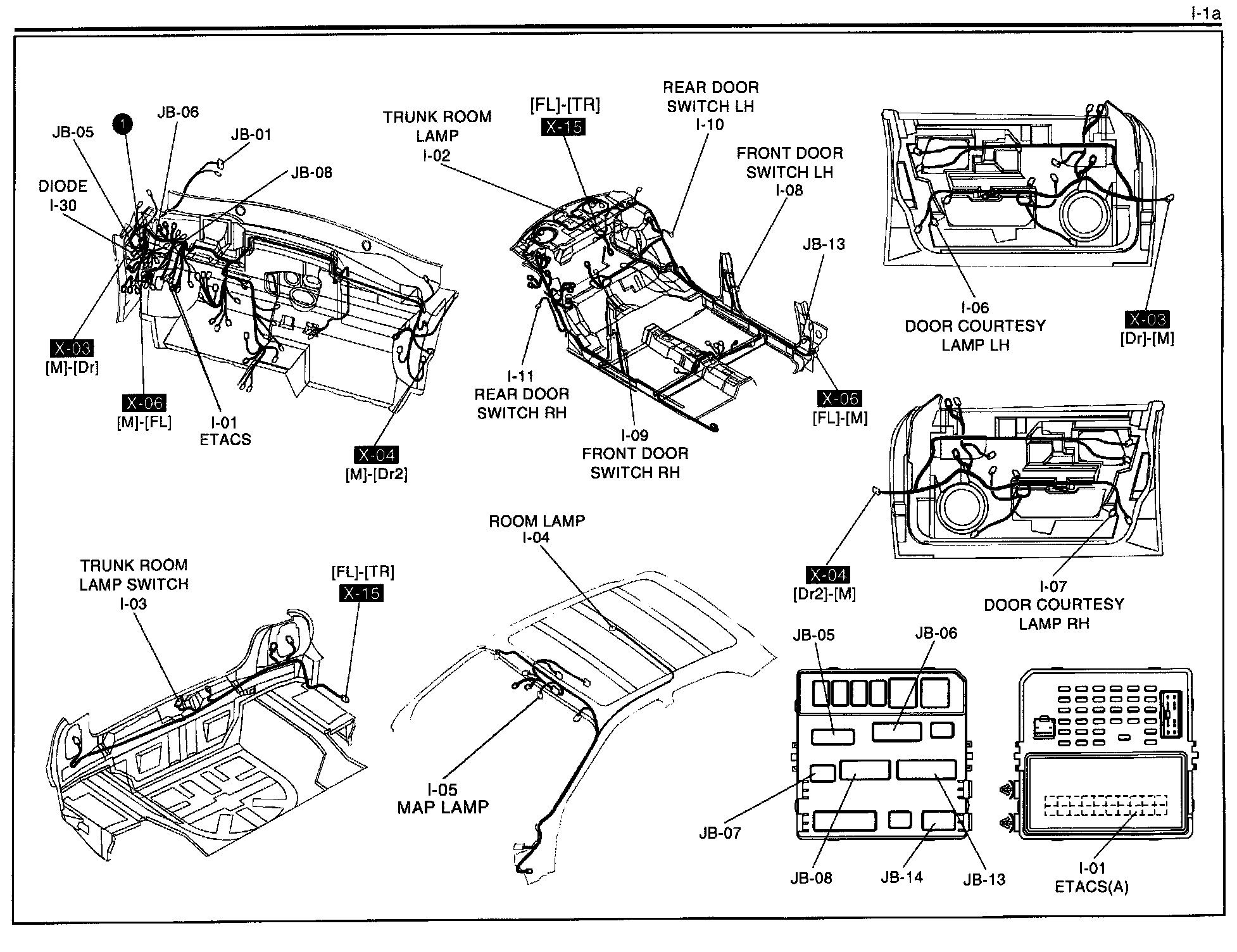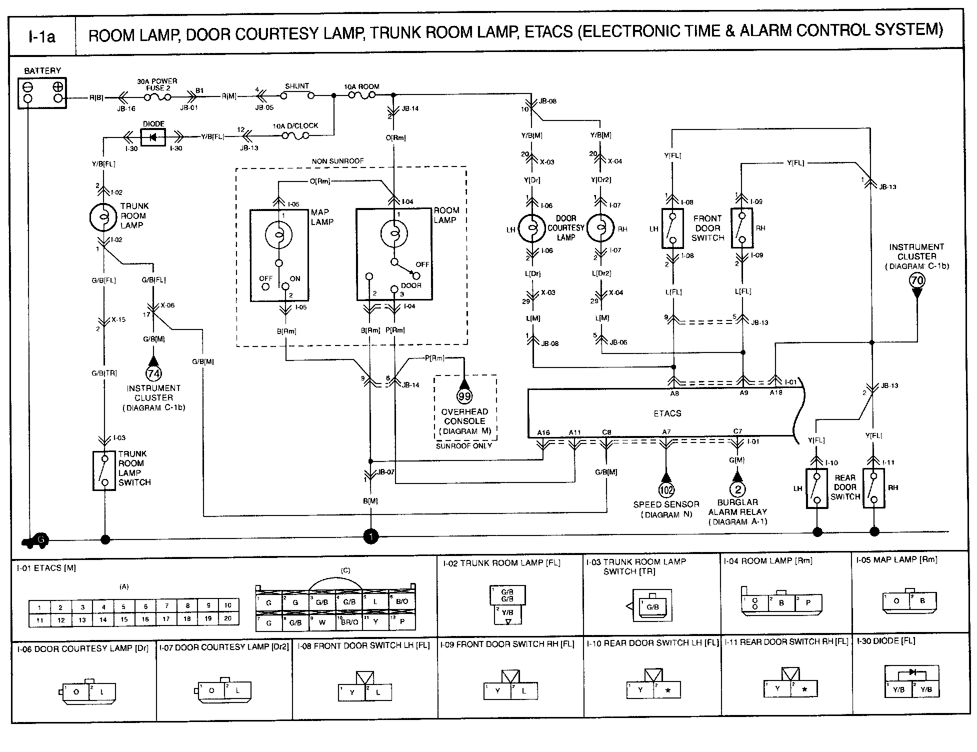 Room Lamp, Door Courtesy Lamp, Trunk Room Lamp, ETACS (Electronic Time and Alarm Control System)Diagram I-1a: