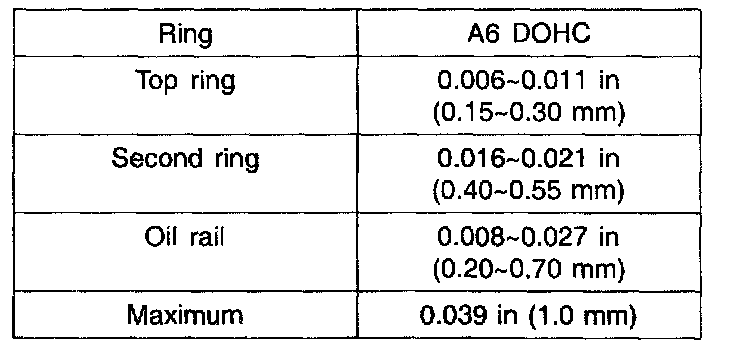 1. Insert a new piston ring into a piston ring groove and check clearance between piston ring and ring end. Clearance between ring and ring end.