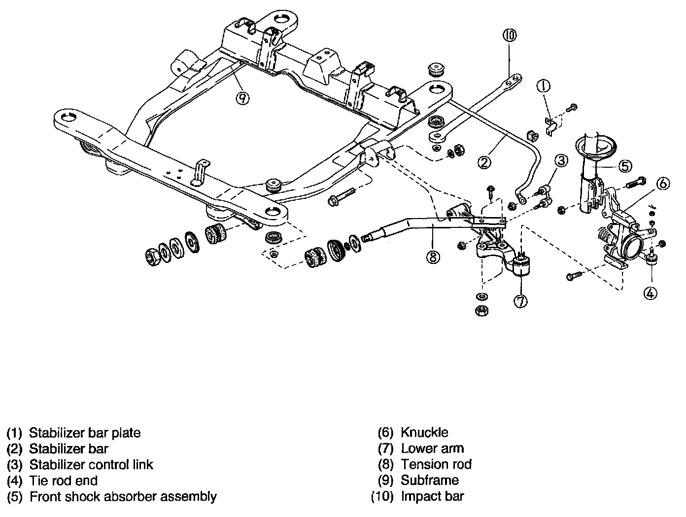 Front suspensionCaution: When tightening (by specified torque) the nuts of the arm and links of the front suspension system, the wheels of the vehicle shall be in contact with ground and under loads (2 passengers load at the front seats if possible).