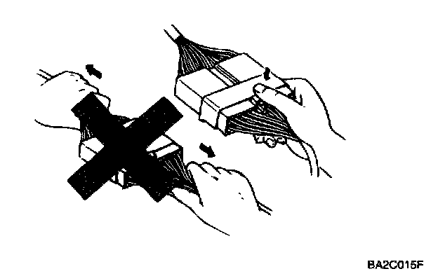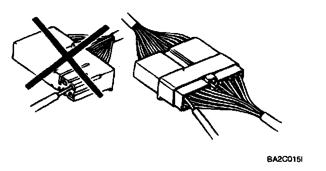 1. Never pull on the wiring harness when disconnecting connectors.