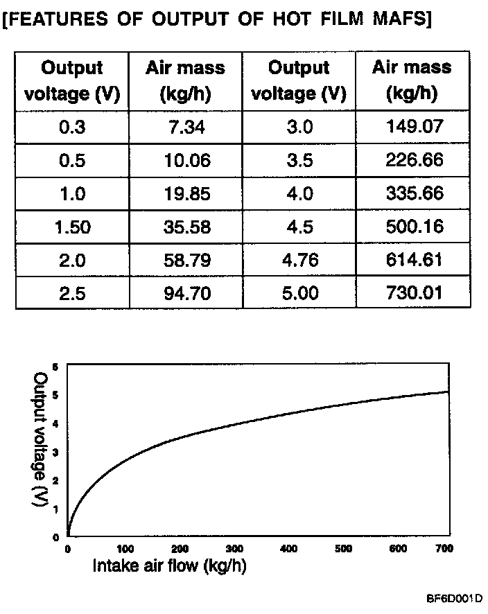 3. If the engine can idle even if the MAFS output voltage is out of specification, check the conditions as below: