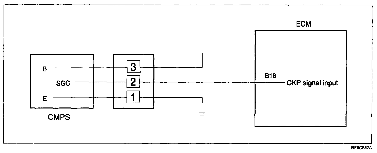 1. If an unexpected shock or engine stall occurs in running, try to shake the harness of crankshaft position sensor. Check the sensor connector(s) for defective contacts if engine stalls in the case.